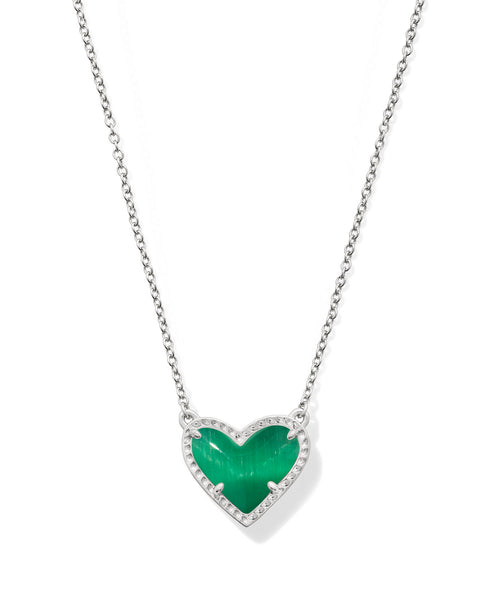Ari Heart Silver Pendant Necklace in Emerald Cats Eye
