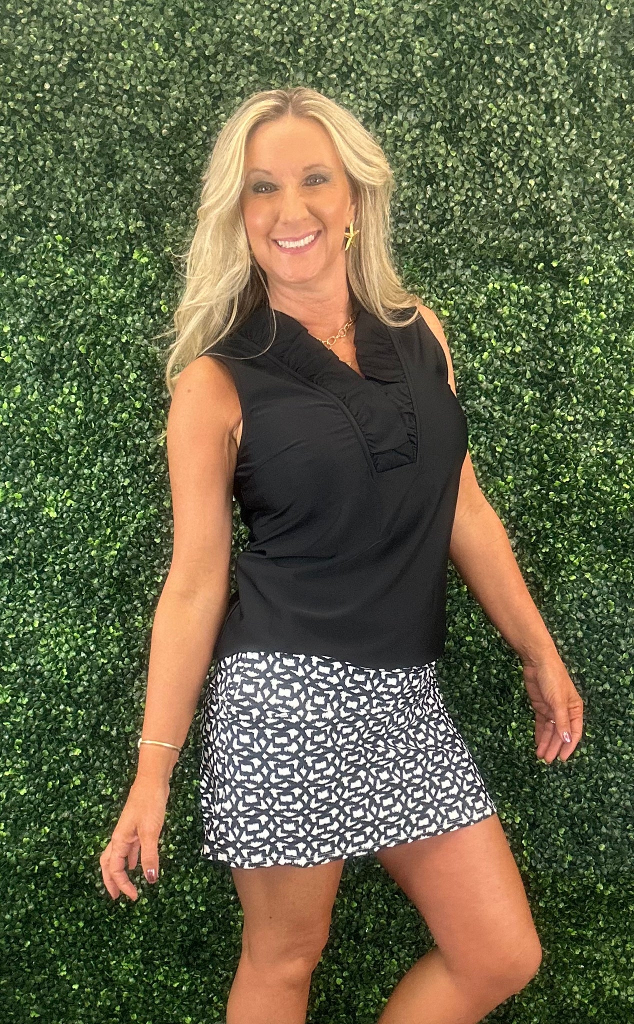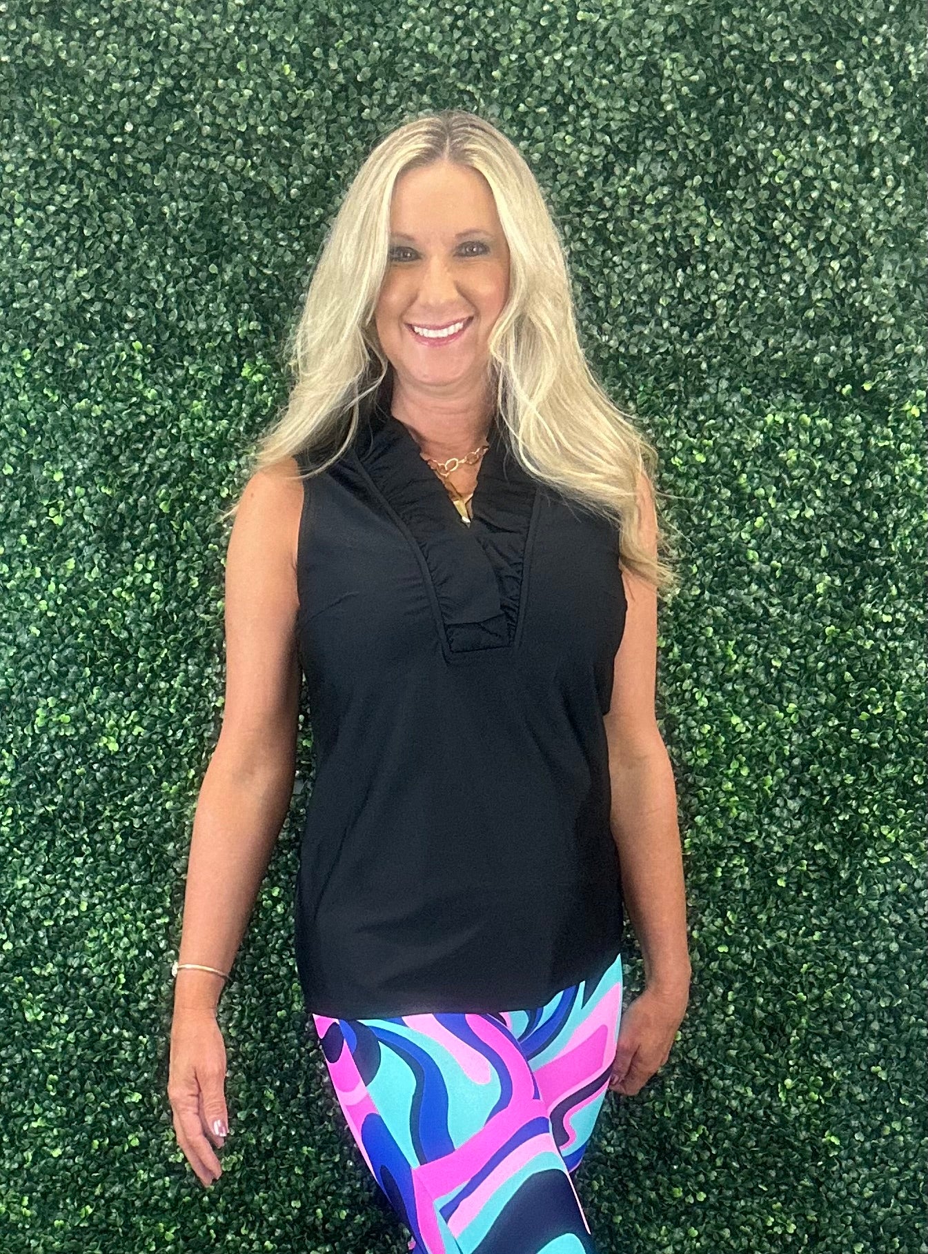 This Evelyn Sleeveless Top brings effortless charm with its feminine ruffle V-neckline and flattering silhouette. Stay comfortable and protected with ☀️ UPF50+ sun protection and enjoy a lightweight, breathable, wrinkle-free fabric perfect for everyday wear or travel.