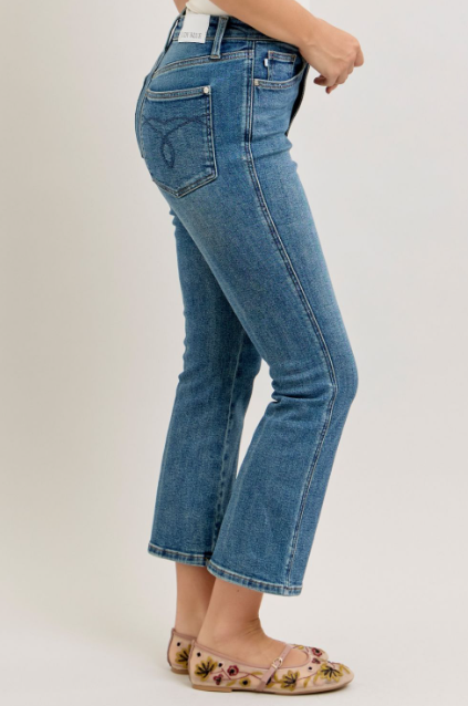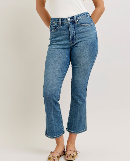 Flattering and comfortable, the High-Waist Tummy Control Kick Flare Jeans are designed to smooth, support, and style with ease. Featuring a tummy control panel and a high-rise waist, these jeans create a sleek silhouette while offering comfortable all-day wear. The kick flare leg adds a modern touch that pairs perfectly with sneakers, sandals, or heels. Crafted from soft stretch denim, they move with you while maintaining their shape—making them a go-to pair for everyday outfits.