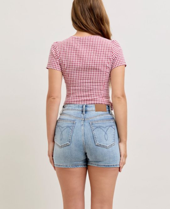 high waist slim shorts, women’s denim shorts, stretch denim shorts, boutique denim shorts, summer shorts for women, flattering high rise shorts, Sweet Southern Charm shorts