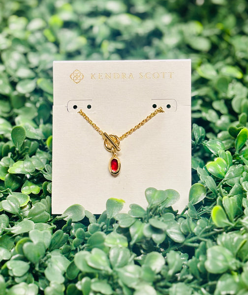 Mini Elisa Gold Toggle Pendant Necklace Carmine Red Illusion