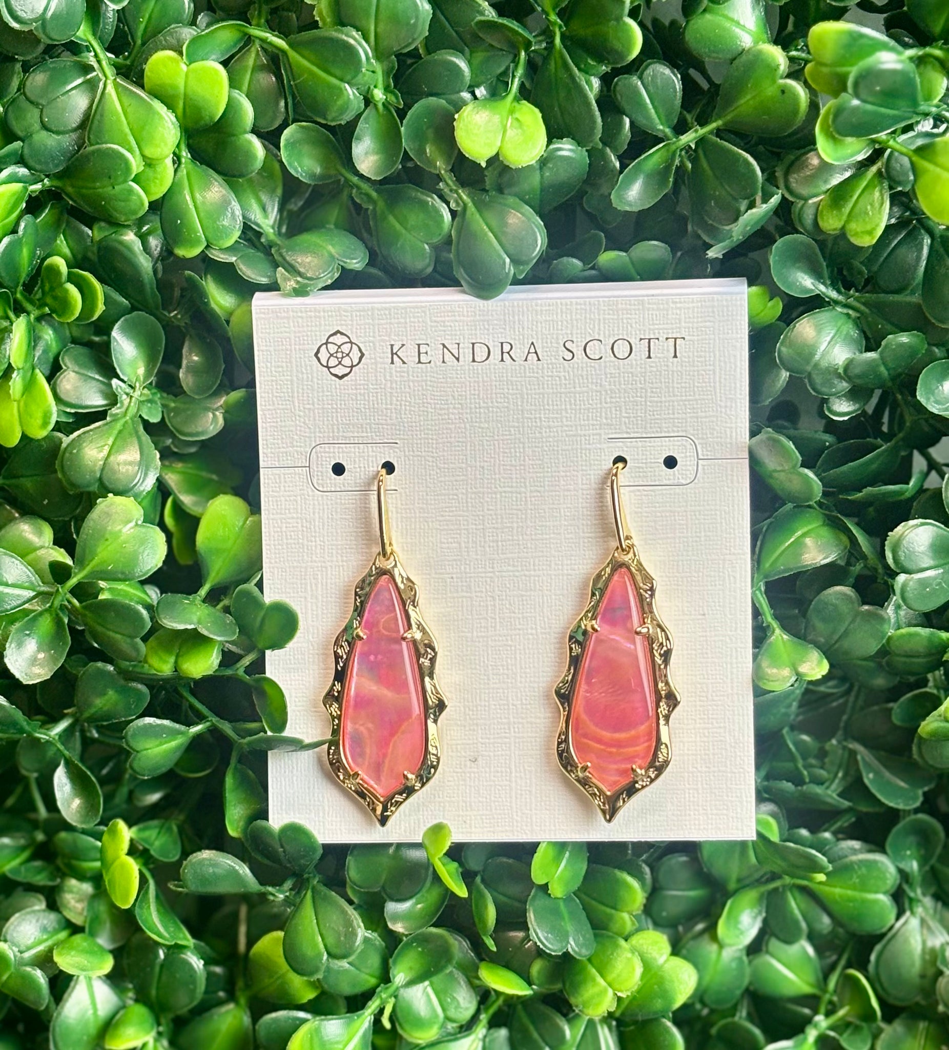 Adriana Scallop Frame Gold Earrings Light Pink Iridescent Abalone