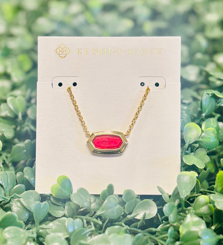 Elisa Bezel Gold Pendant Necklace in Carmine Red Illusion
