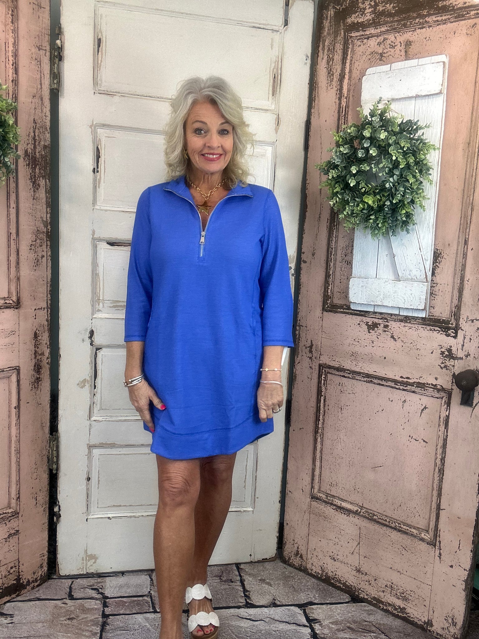Bright, flattering, and effortlessly comfortable, the Lulu-B Half Zip Dress is a go-to for sunny days and casual-chic outings. Crafted from a textured performance fabric, this dress offers lightweight comfort with a polished look that doesn’t cling. The half-zip neckline adds sporty versatility, while the easy silhouette makes it perfect for everything from travel and errands to lunch dates and resort wear. Stylish yet practical, this Lulu-B favorite is one you’ll reach for again and again.