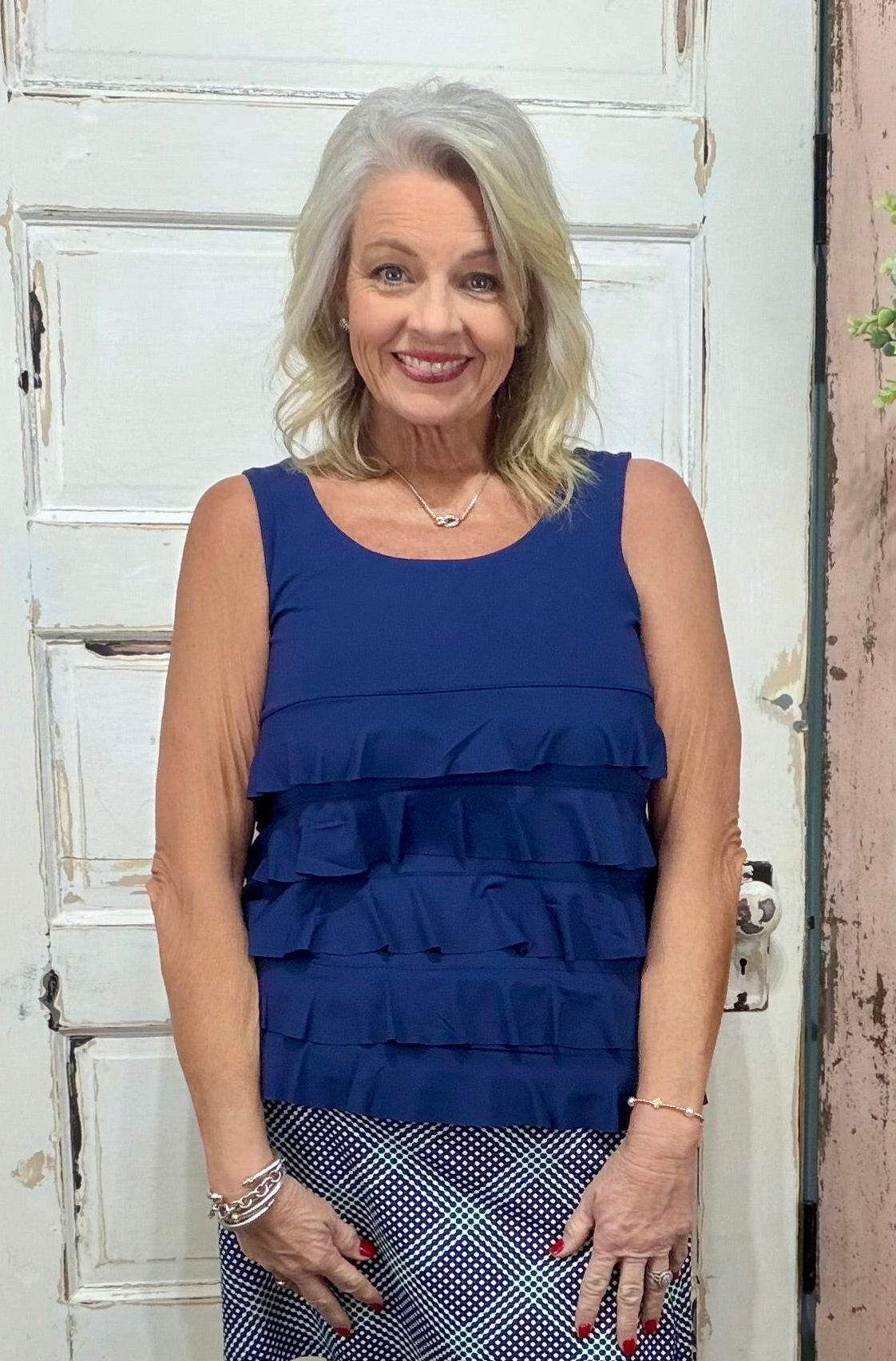 Turn heads with the flirty and fun Cha Cha Tank! Designed with soft, stretchy fabric and UPF50 protection, this feminine favorite features front and back ruffles, a scoop neckline, and a straight hemline at the waist. At 30.5" long, it pairs perfectly with any bottoms for effortless summer style. Machine washable and hang dry for easy care—add a little cha cha to your wardrobe today!
