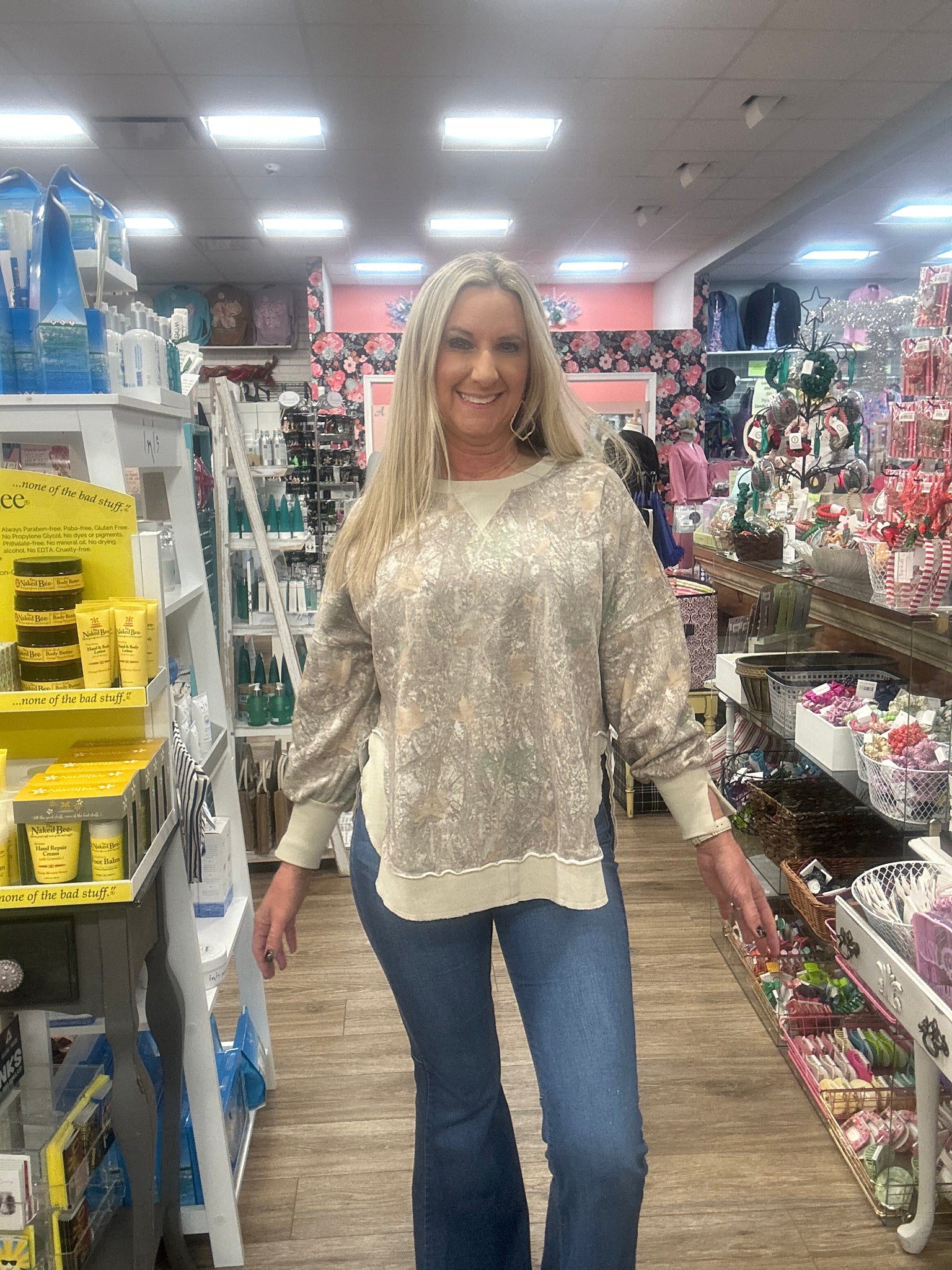 Whether you’re heading to brunch or lounging at home, this camo pullover is your go-to!!