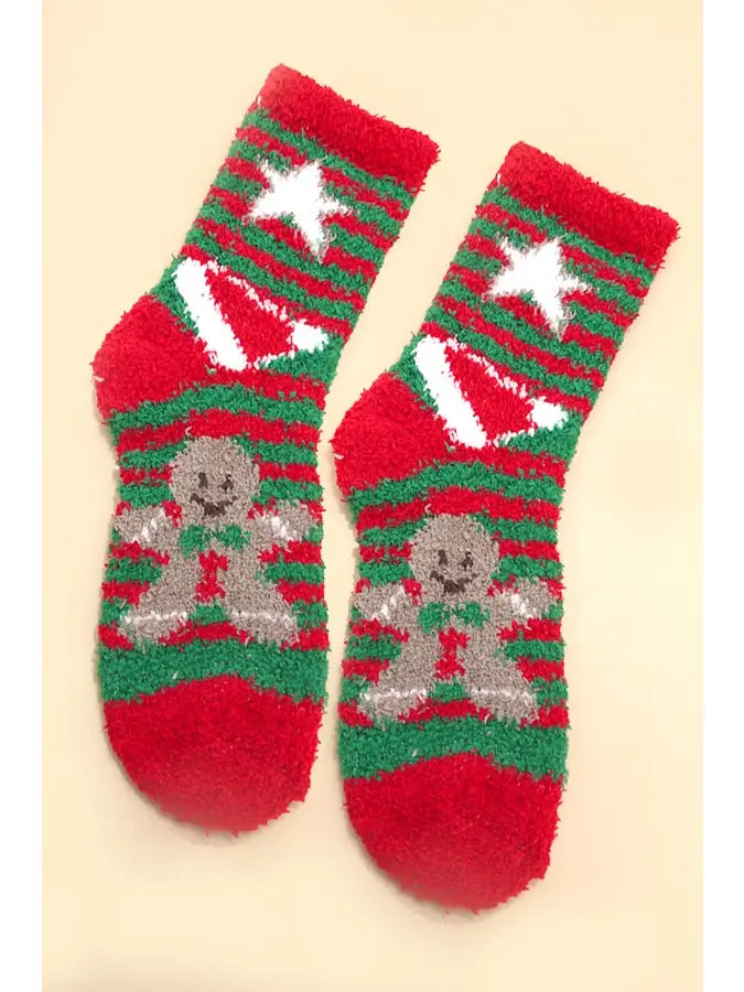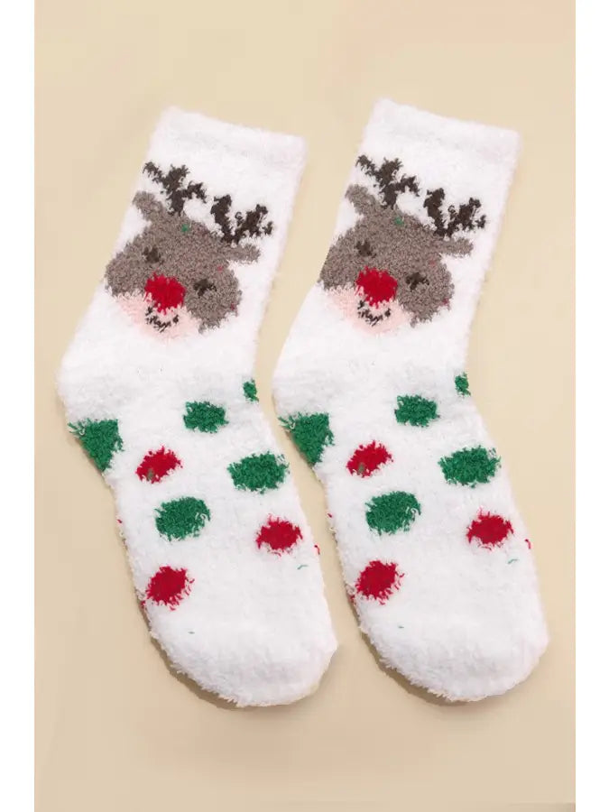 Here is cute X-mas Christmas holiday socks. These soft fluffy socks are designed to provide maximum comfort, with a soft and fluffy material that feels gentle against your skin. The socks are also designed to be lightweight and flexible, which allows you to move your feet freely without feeling constrained. You can wear with PJ or lounge wear. One Size Fits All size: crew socks yarn: coral fleece material: polyester/spandex