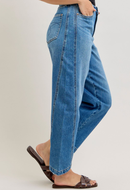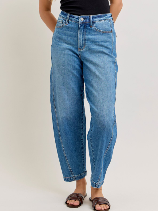 Meet the denim everyone’s talking about—the Judy Blue High-Rise Barrel Rigid Magic Jeans. Designed with Judy Blue’s innovative Rigid Magic construction, these jeans feature a structured 100% cotton front panel for that classic denim look, paired with a stretchy back panel for comfort where you need it most. The barrel-leg silhouette delivers a modern, on-trend shape, while the high rise waist flatters and supports. Stylish, comfortable, and fashion-forward, these jeans are the perfect blend of vintage structure and everyday wearability.