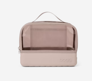 - Compatible with all three Bogg Bag sizes, it features our signature tread base for tip-proof stability on vanities, counters, and shelves. A transparent topper, interior slip pocket, and wide U-shaped zipper make it easy to see and grab what you need. Finished with a sturdy top handle for grab-and-go convenience.