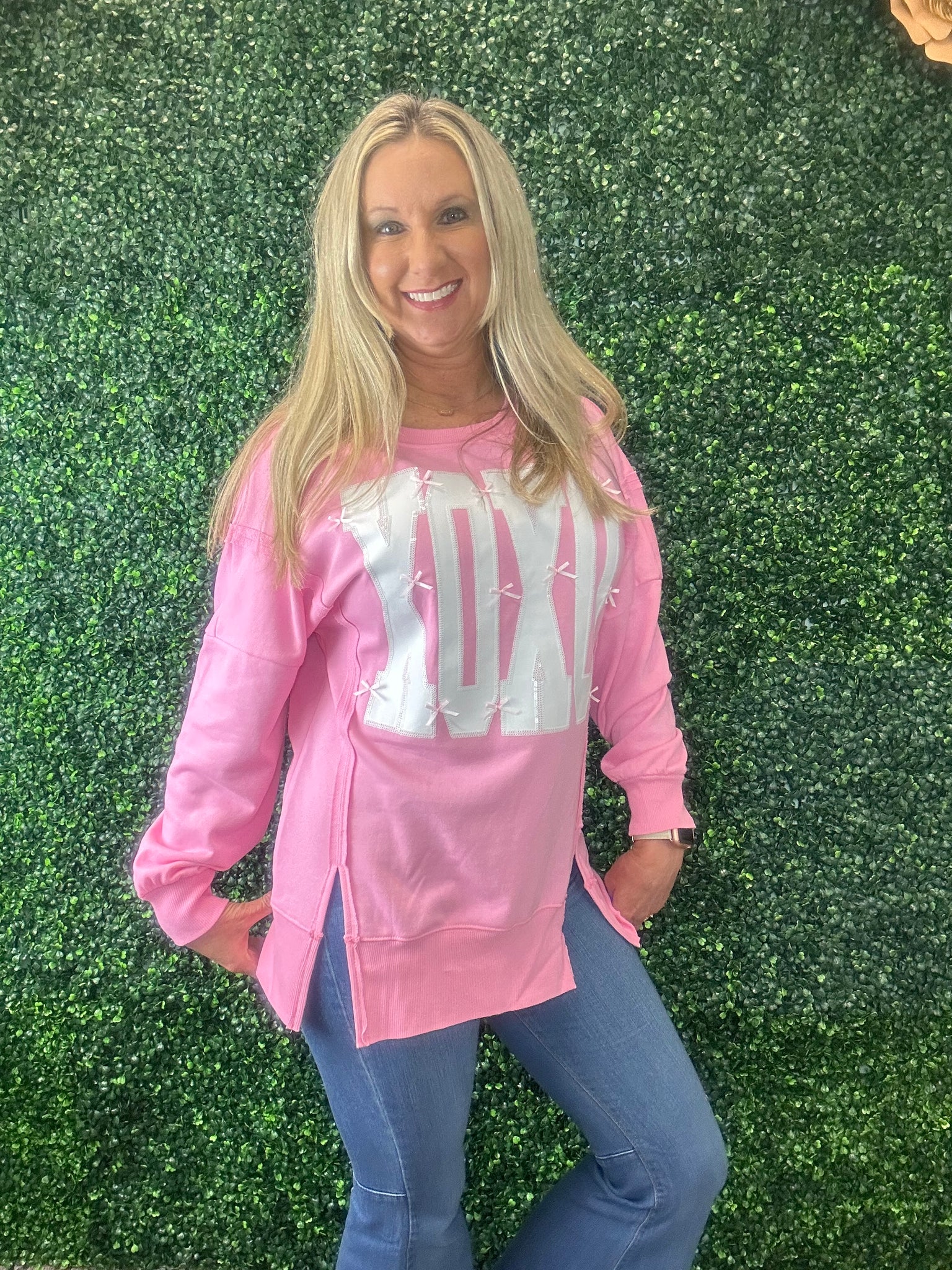XOXO Bow Sequin Crew